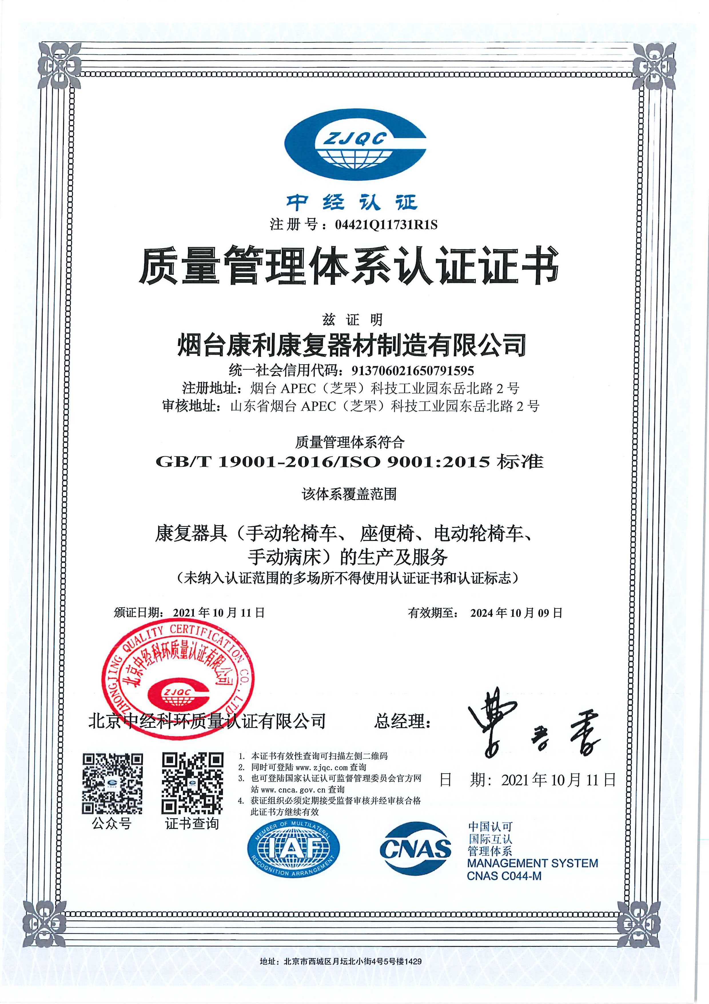 煙臺康利康復器材制造有限公司成立于1993年。公司自成立以來一致致力于手動輪椅車、電動輪椅車、手搖三輪車、手動護理床、電動護理床、座便椅、洗浴椅、助行器、拐杖等康復輔助器具的研發、生產和銷售。經過20多年的不懈努力,我們先后研發和生產了130多個品種的康復輔助器具,產品銷售覆蓋國內95%以上的省市自治區,國外十多個國家和地區,得到了各級政府及最終用戶的信賴與肯定。公司于2000年起先后通過了IS09001質量管理體系認證、IS013485醫療器械管理體系認證、1S014001環境管理體系認證、職業健康安全認證、售后服務五星級認證、歐盟CE安全認證等。